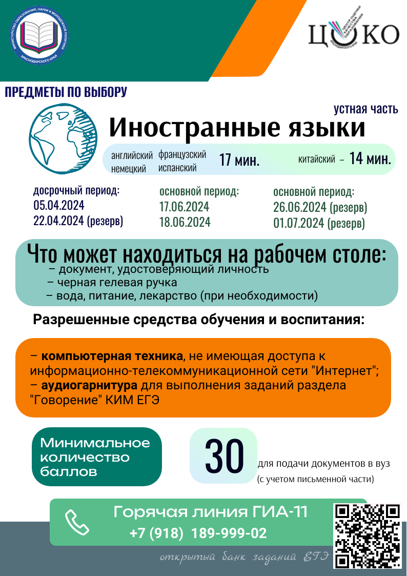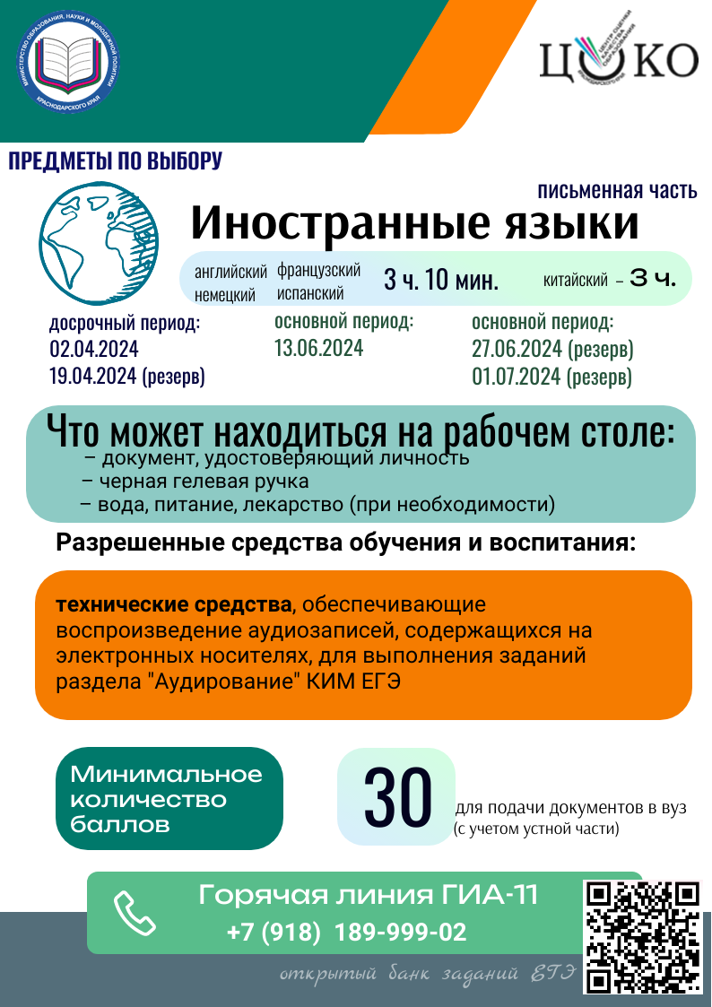 ЕГЭ проводится по 15 общеобразовательным предметам: Русский язык