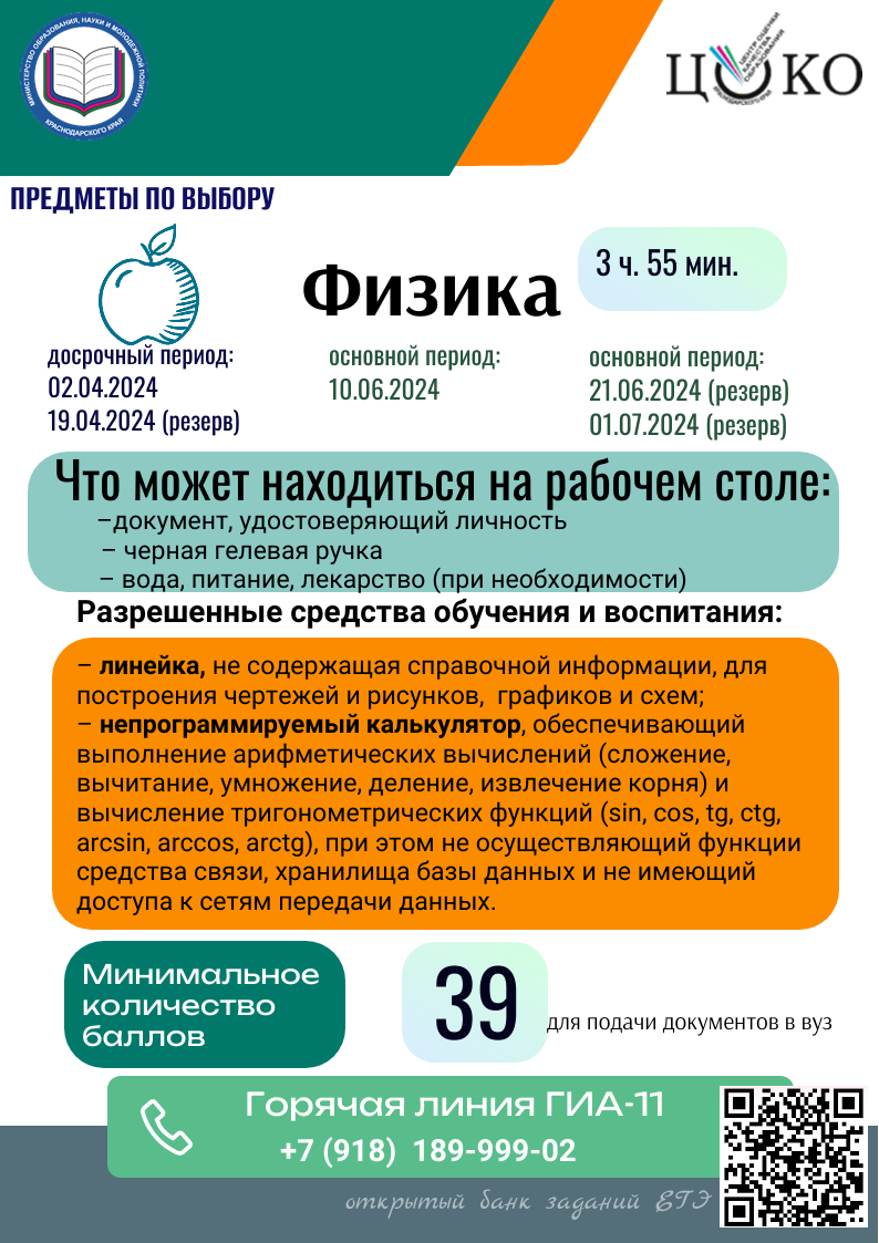 Участники ГИА вправе пройти ЕГЭ по следующим учебным предметам: «Биология», «География», «Иностранные языки» (английский, испанский, китайский, немецкий, французский), «Информатика», «История», «Литература», «Обществознание», «Физика», «Химия», которые указанные участники ГИА сдают по своему выбору для предоставления результатов ЕГЭ по соответствующим учебным предметам при приеме на обучение по программам бакалавриата и программам специалитета в ОО высшего образования.