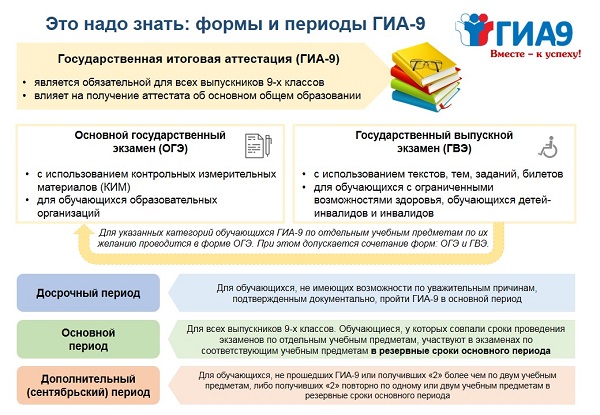 ГИА-9 проводится в формах основного государственного экзамена (далее – ОГЭ) и (или) государственного выпускного экзамена (далее – ГВЭ).