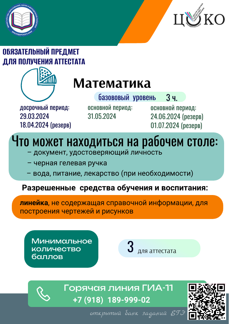 Для получения аттестата выпускники текущего года сдают обязательные предметы — русский язык и математику базового либо профильного уровня. Другие учебные предметы ЕГЭ выпускники сдают на добровольной основе по своему выбору для поступления в образовательные организации высшего образования.
