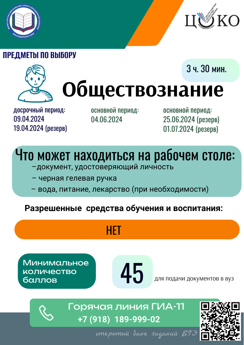 ГИА-9 включает в себя четыре экзамена по учебным предметам «Русский язык» и «Математика» (далее – обязательные учебные предметы), а также экзамены по выбору обучающегося, экстерна по двум учебным предметам из числа учебных предметов: «Биология», «География», «Иностранные языки (английский, французский, немецкий и испанский)», «Информатика», «История», «Литература», «Обществознание», «Физика», «Химия» (далее – учебные предметы по выбору).
